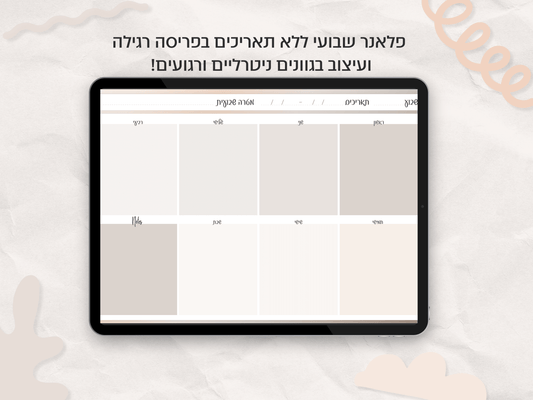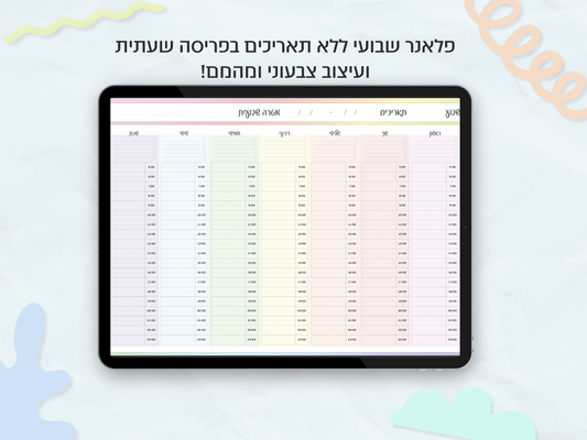פלאנר דיגיטלי שבועי | ללא תאריכים