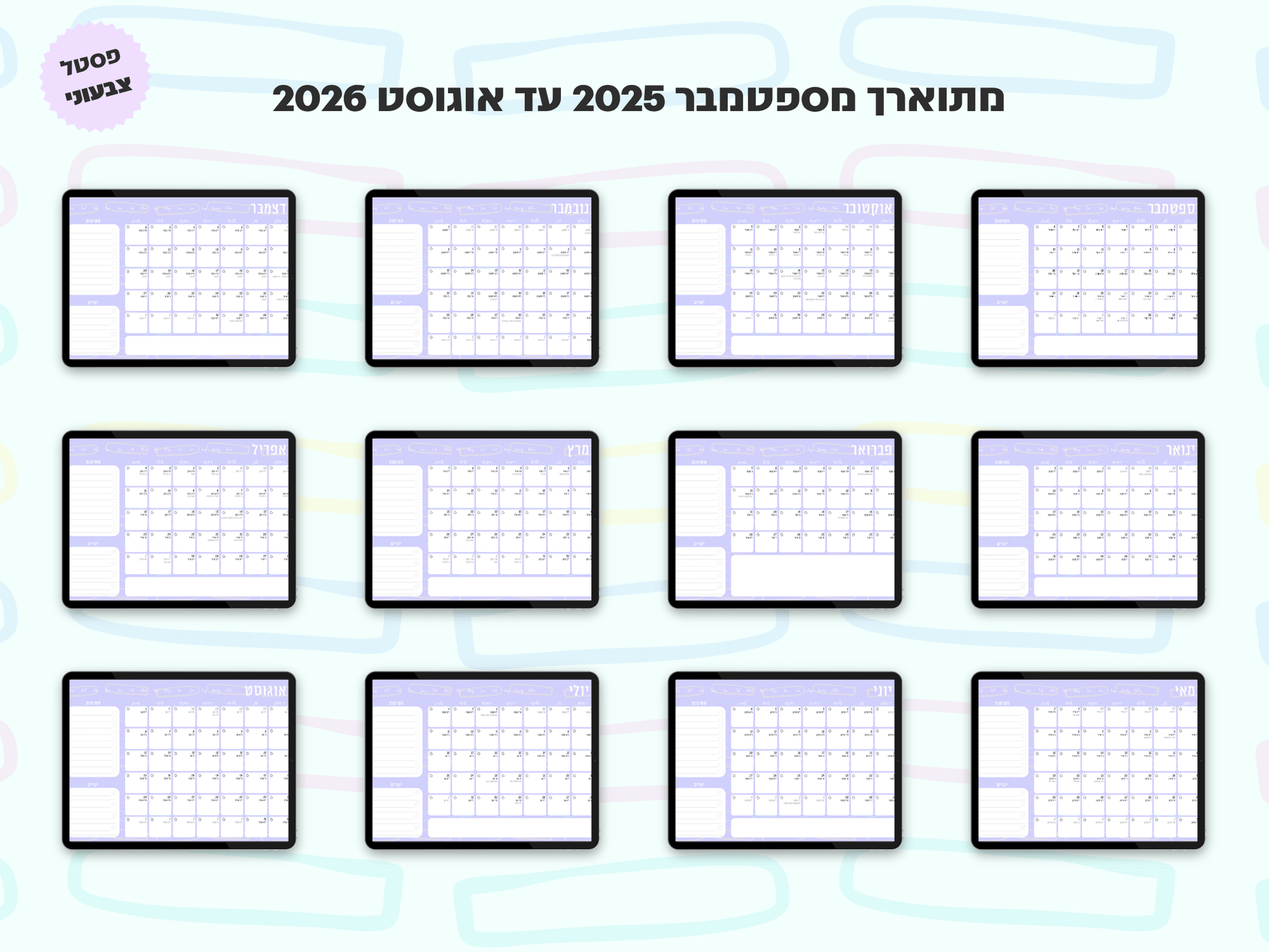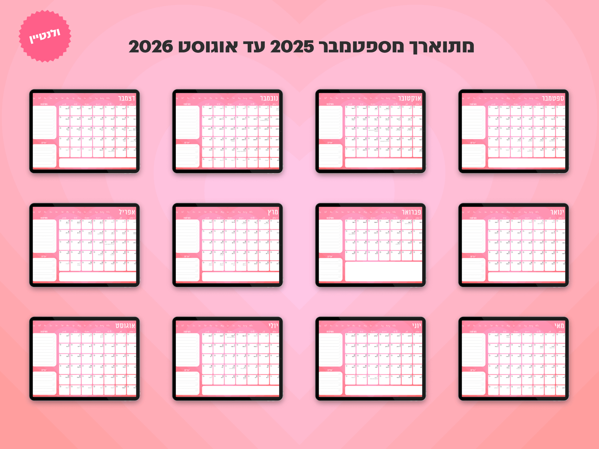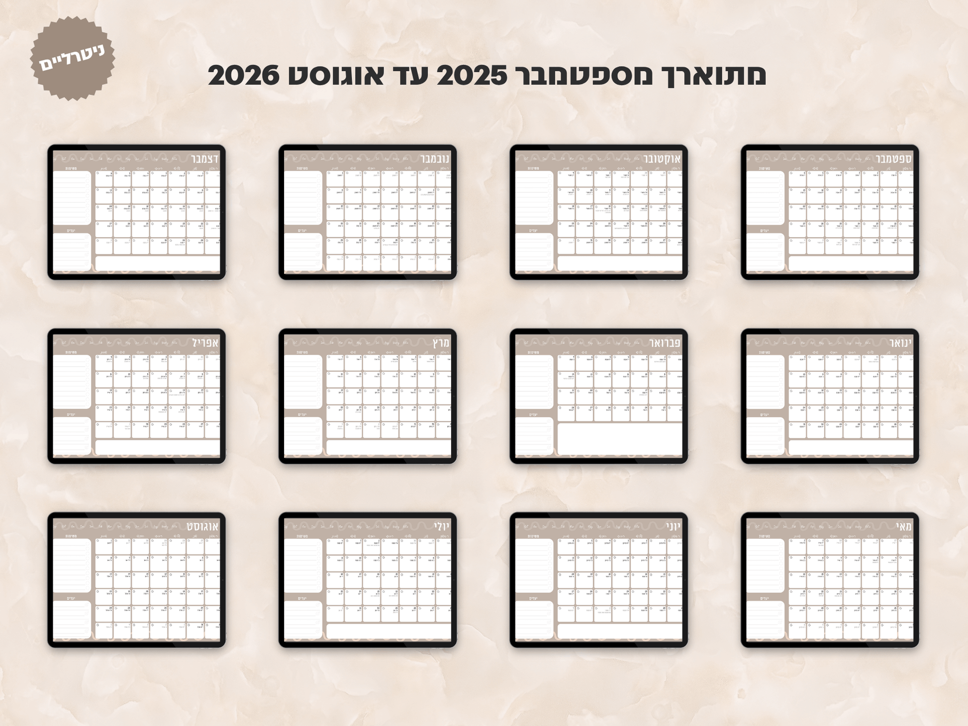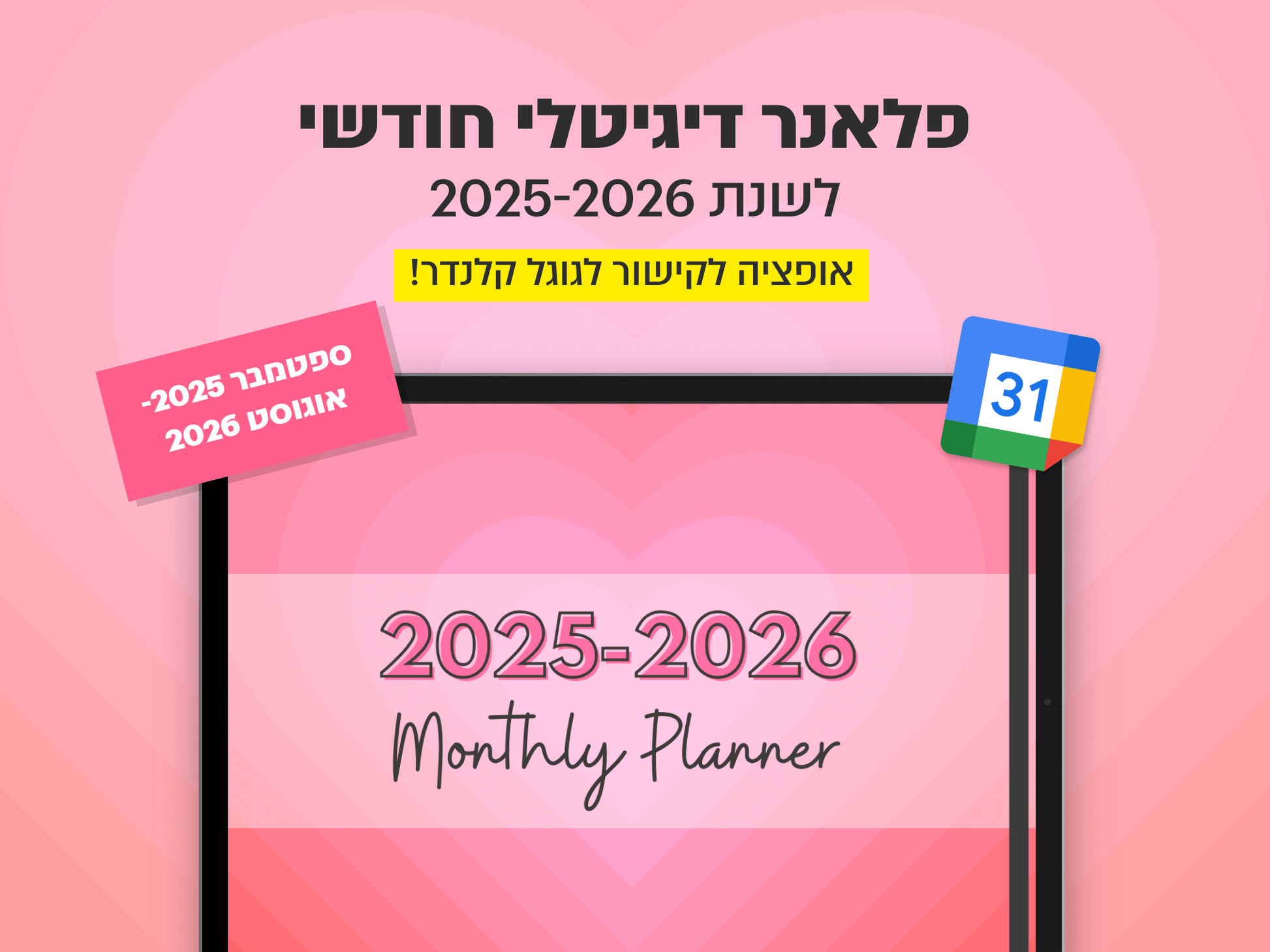 פלאנר דיגיטלי חודשי לשנת 2025-2026
