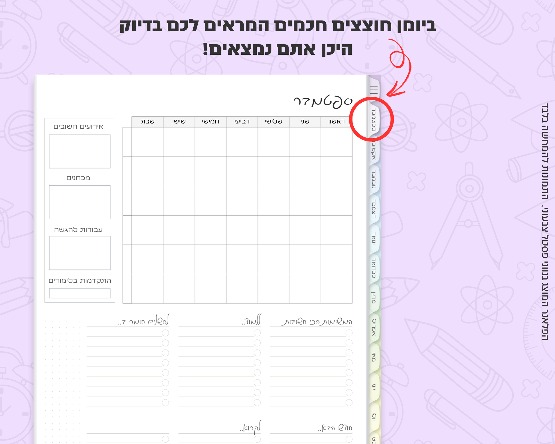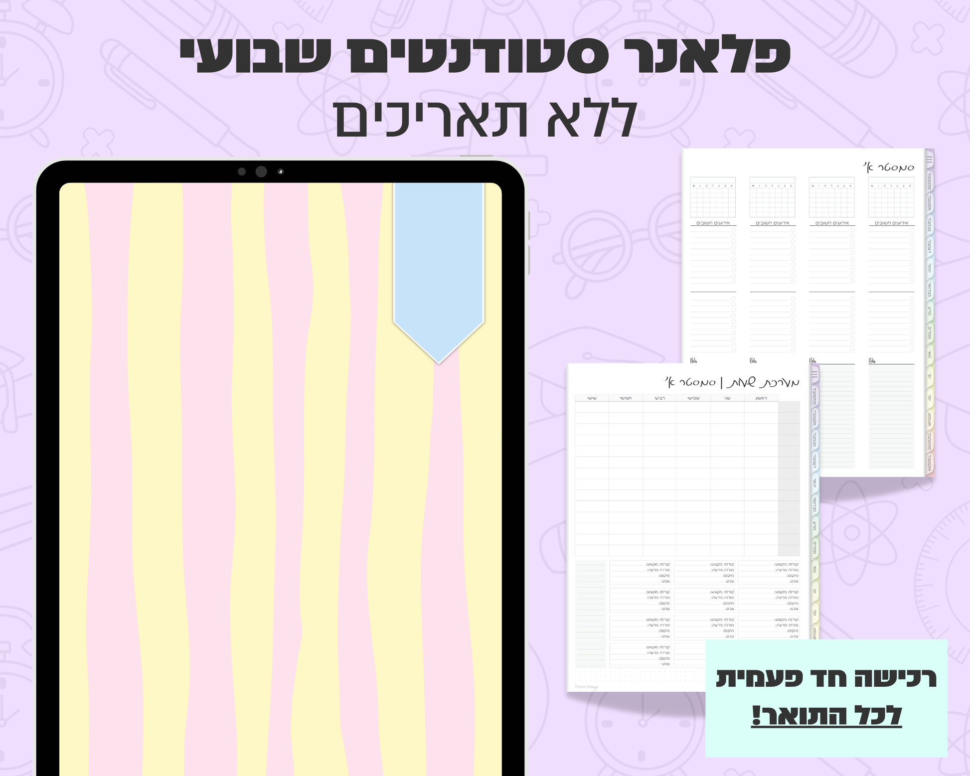 פלאנר דיגיטלי שבועי לסטודנטים | ללא תאריכים