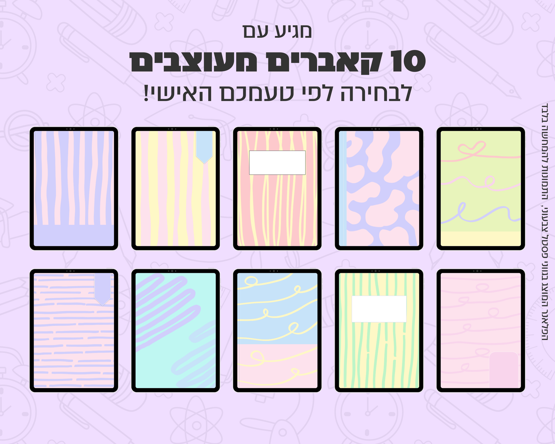 במקום להתרוצץ כל שנה לקנות יומן חדש, יש לך את הכל מסודר, יפהפה, מעוצב בעברית ובכיוון הנכון (ימין לשמאל), ובסטייל שהכי כיף לפתוח כל יום.